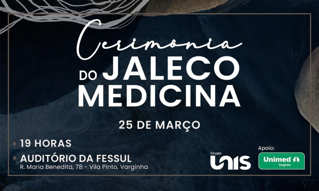 O Grupo Unis realiza, no dia 25 de março de 2026, às 19h, na Fessul, em Varginha, a 2ª Cerimônia do Jaleco do curso de Medicina.
