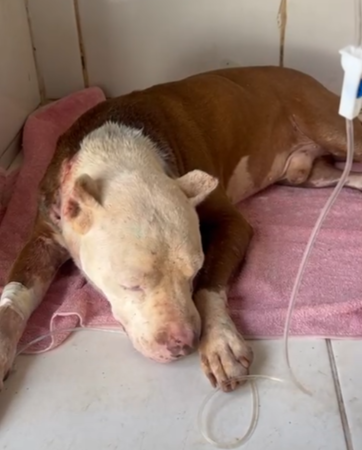 Sob os seus cuidados, o Pit Bull segue com atenção redobrada, muito bem assistido e lutando pela vida.
