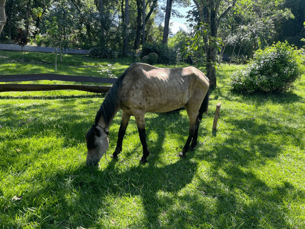 “Lá onde a égua está, ela vem recebendo muito carinho e todos os cuidados necessários, afinal lá eles têm toda estrutura e são especializados nesses tipos de casos. Ela está bem, está se recuperando e tomando as vitaminas e as medicações para ficar melhor ainda, para ganhar peso e voltar a ter saúde, do jeito que ela merece. Ela já é uma égua idosa, muito velhinha e estava bastante magra e debilitada. Certamente antes de ser vítima de agressões, foi vítima de abandono, mas agora está no lugar certo”, revelou Myller Bueno.