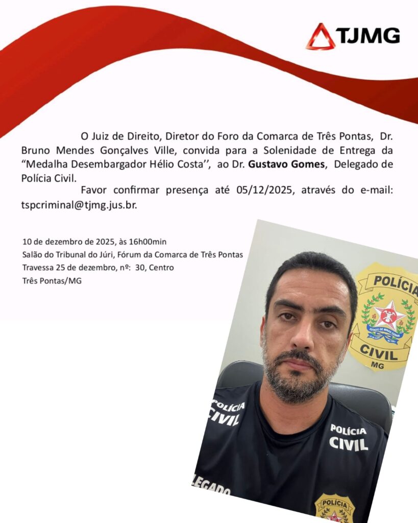 DR. GUSTAVO GOMES TEM SE DESTACADO PELOS EXCELENTES TRBALHOS À FRENTE DA POLÍCIA CIVIL Reconhecidamente um dos melhores delegados da Polícia Civil de Minas Gerais e do Brasil! Dr. Gustavo Gomes, trespontano de nascimento, que durante anos coordenou a Polícia Civil em Três Pontas, com resultados e aprovação históricas, coordena atualmente a Delegacia Rural em […]